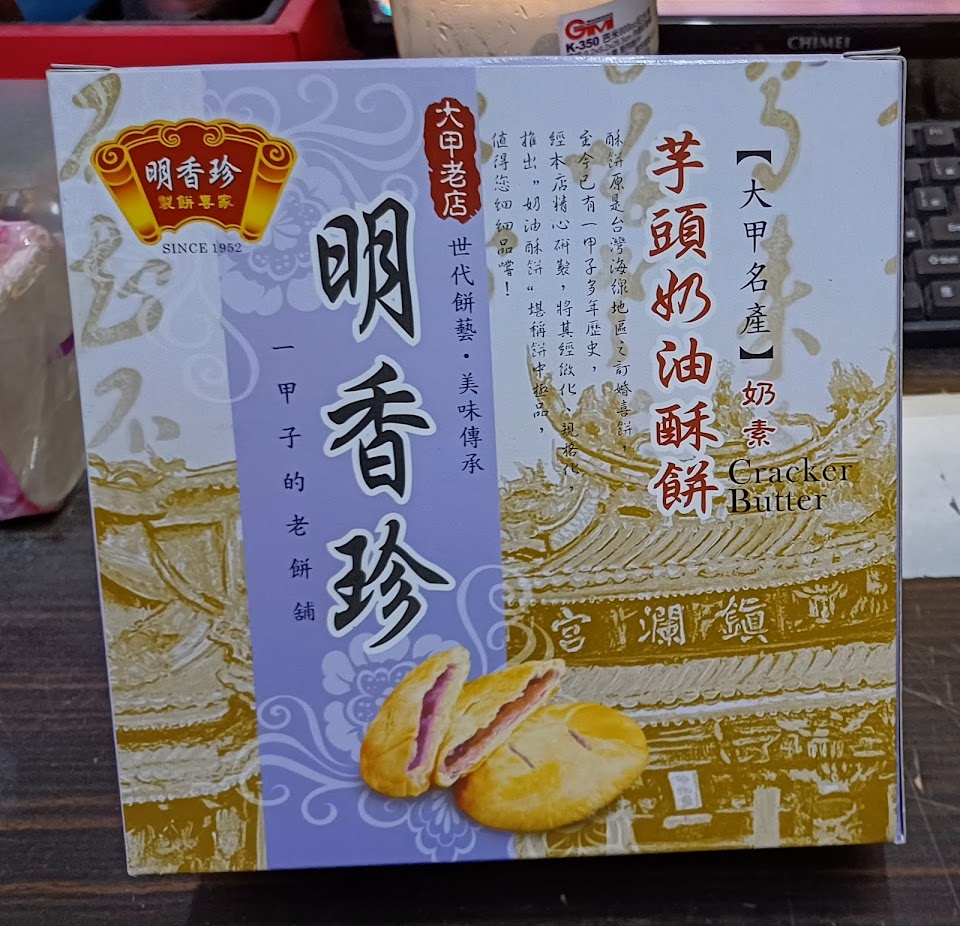 昨天去明香珍買了奶油酥餅帶回台北給家人享用,一盒綜合奶油,一盒芋頭,內餡紮實,不會一下就鬆開了,且口味多樣,小朋友很有選擇感,也很適合早上出門前當早餐,配個牛奶,很好吃