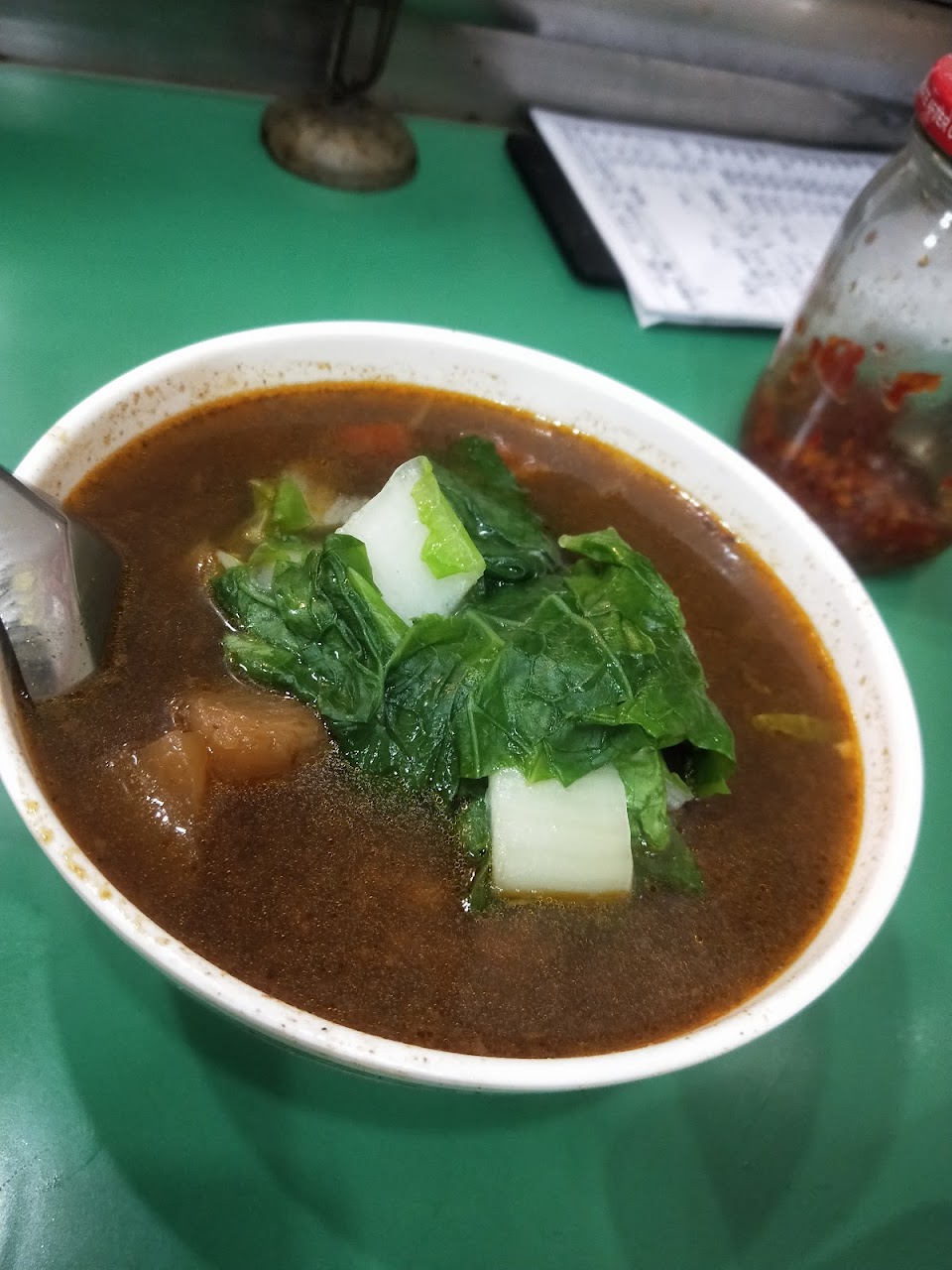 路邊的素食小店,紅燒湯的表現讓人驚艷,運用許多蔬菜還有調味做出湯頭的深度,也不走淡而無味的養生路線,湯裡面有大量紅白蘿蔔香菇青菜及素肉,素肉也非一般常見的廉價品。水餃的表現一般,滷味的鹹度偏淡只有淡淡的魯香,搭配醬油膏還算不錯。座位偏少店面偏小,稱不上舒適。