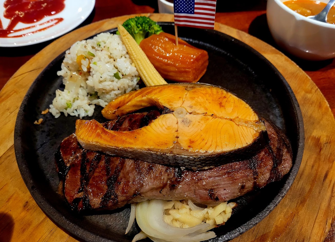 牛排好吃,飲料.水果.羅宋湯和玉米濃湯還有薯條可以續。唯一比較不喜歡的是加點的鮭魚比較多刺。