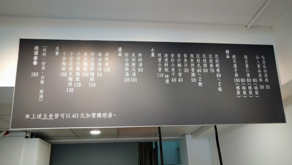 一進入店內的感覺是覺得店面雖然空間不大,位置也偏少,但是乾淨舒適,用餐起來非常舒服。而店裡面有麵線、套餐、小菜等等料理,每一種都想讓人嚐試。