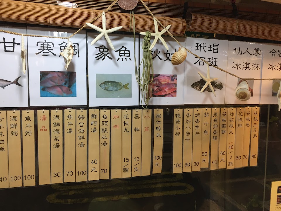 別於一般的便當店、麵店、簡餐店,這邊提供的是與澎湖海鮮以及相關食材的店家。由鹹食的花枝排、花枝丸、小管 到甜食的 仙人掌冰淇淋,有各種不同的內容。如果想要自行料理的話還有提供冷凍食材的販售,有魚肉、飛魚卵香腸跟花枝丸等等。