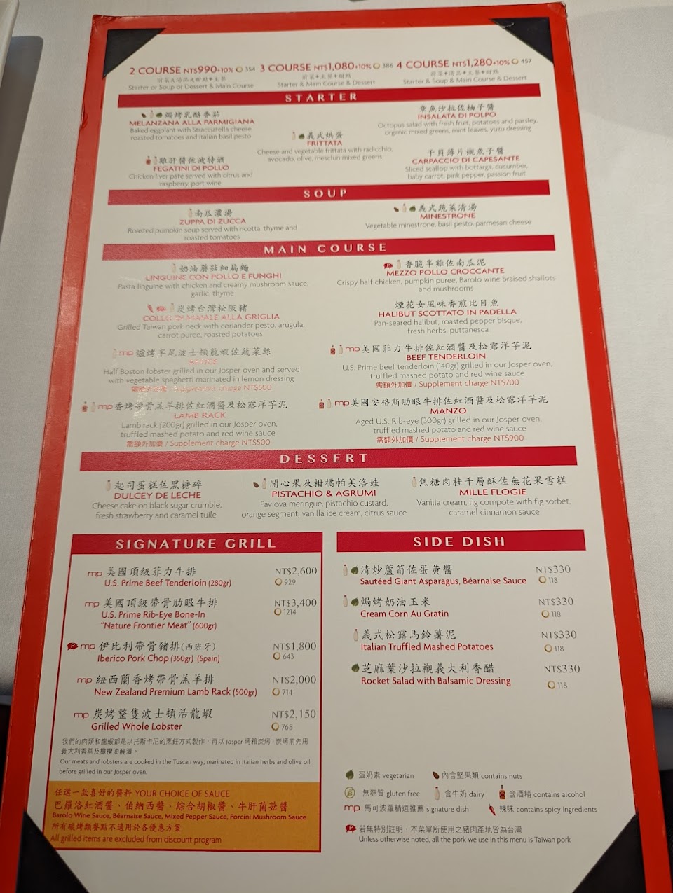 昨晚用餐發現換了新廚師也換了新菜單 其實新菜色也很棒 從開始麵包的桌邊呈現就很優 尤其燉海鮮自己和家人都很喜歡 直到期待的甜點提拉米蘇送上來後 馬上感到失望
