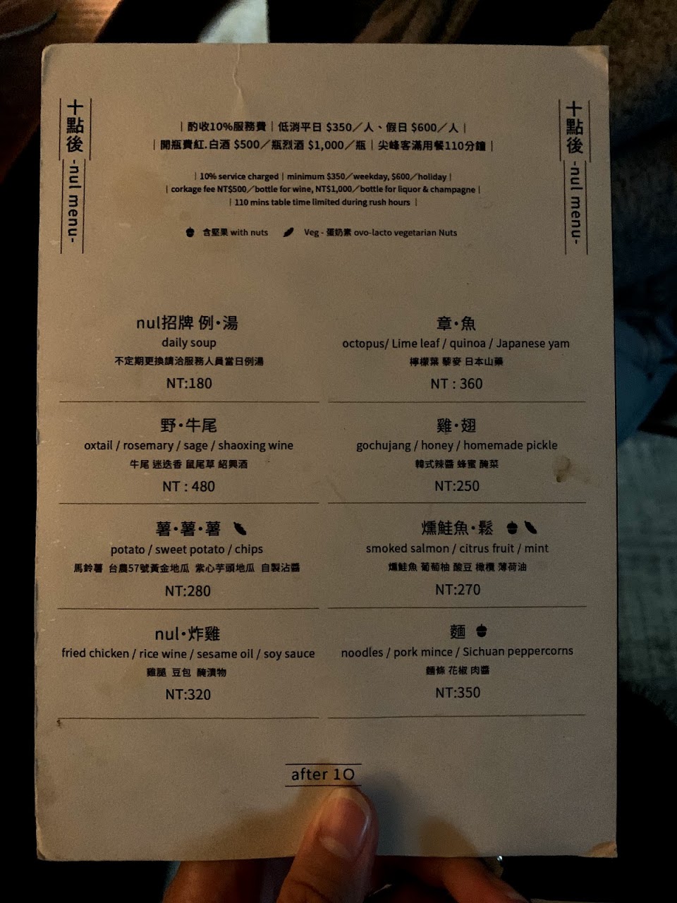 2024最新在地推薦餐廳的菜單_nul taipei – bar & restaurant & music的菜單、圖片