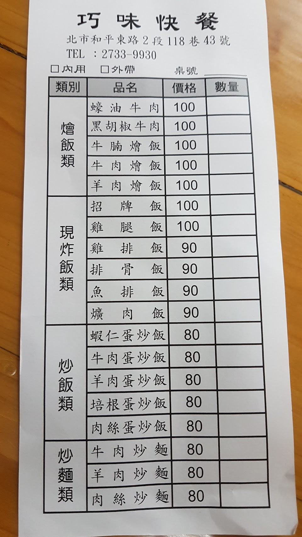 2024最新在地推薦餐廳的菜單_巧味快餐的菜單、圖片