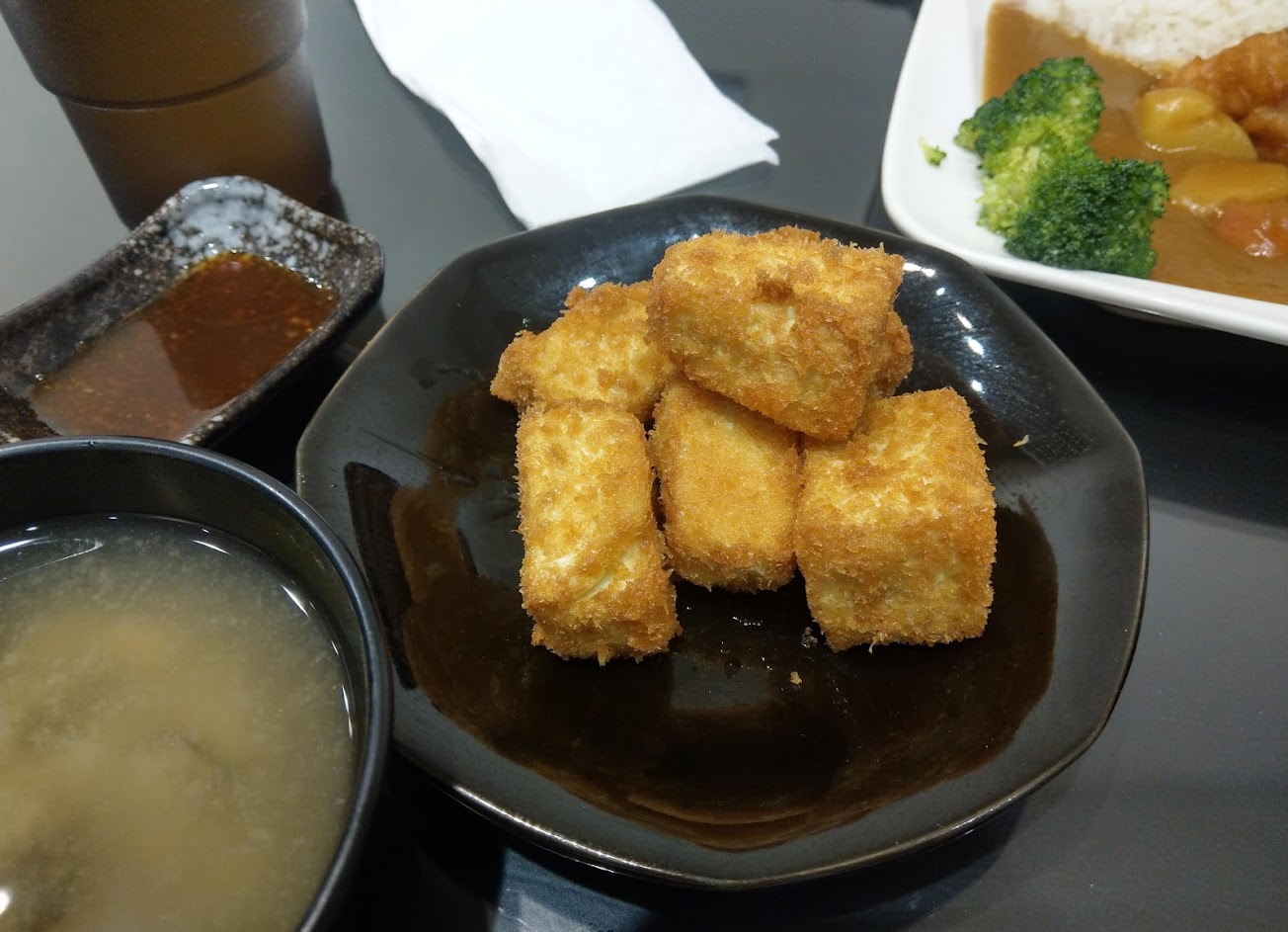日式炸豆腐 50元(吧),是雞蛋豆腐,外皮酥脆,單吃味道還好,搭配蒜頭醬油口味還行。