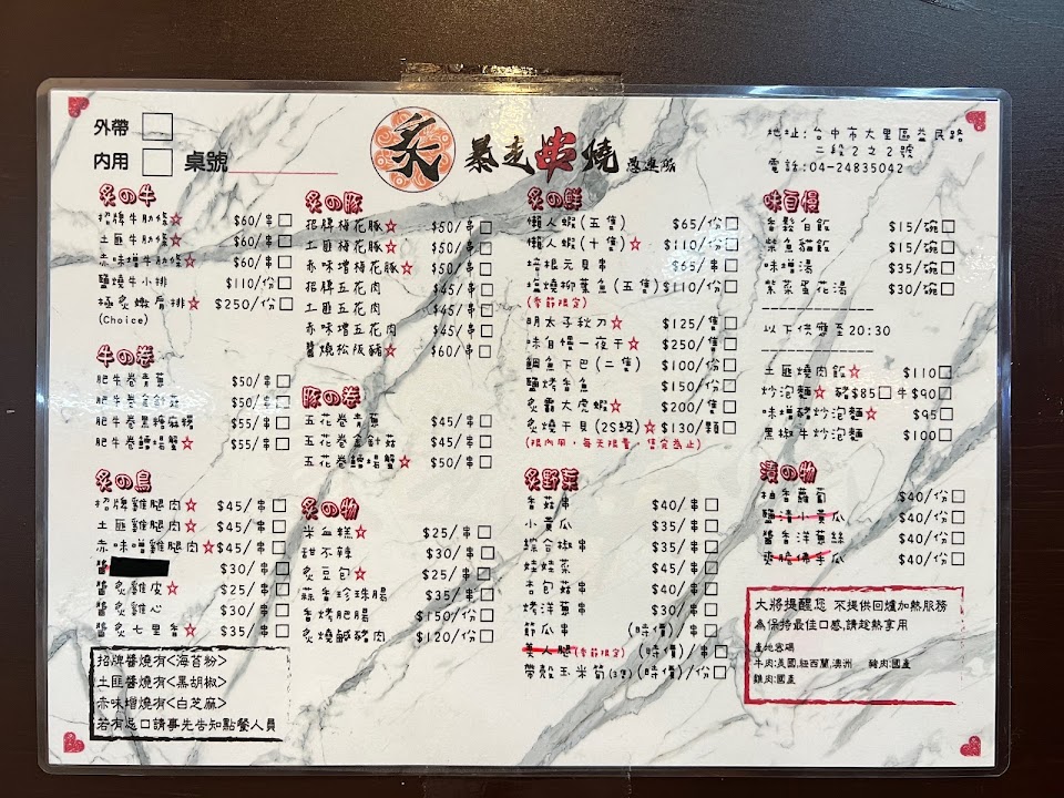 2024最新在地推薦餐廳的菜單_炙-暴走串燒愚連隊(台中一番店)-大里推薦串燒|必吃串燒|一人扛起所有|必吃美食|深夜串燒|宵夜推薦的菜單、圖片