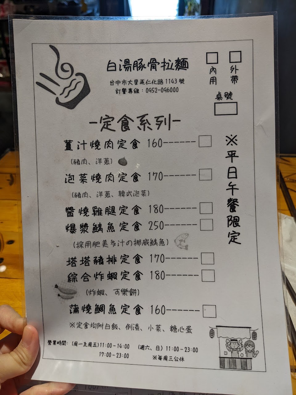定食系列菜單雖然寫平日午餐限定 但那天禮拜日還是有拿給我們 不過我們也沒點