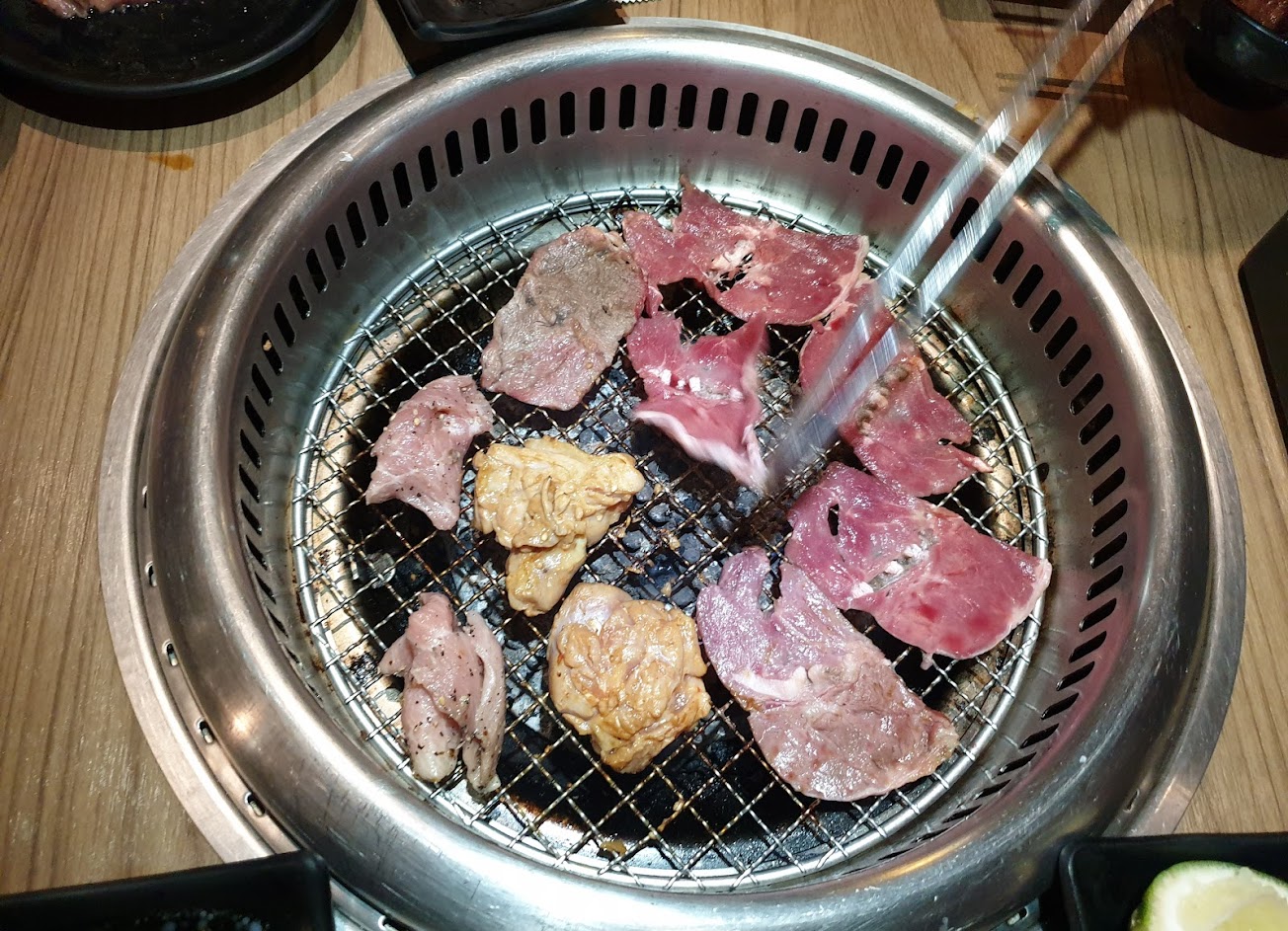一開始會詢問基本盤要上那些肉類,點餐上菜速度不錯,有酒類跟生蠔要加錢外其他都是吃到飽,雞肉、牛、豬肉片品質好,但是牛小排品質差是冷凍的而且很難烤不建議點選,油炸跟壽司類不錯,手卷也很新鮮,敢吃內臟的必點大腸頭,而且服務生也常替我們換烤網,雖然附近有停車場但是要走一小段路,建議騎機車前往。