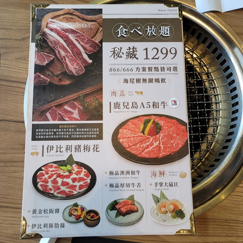 星期日去吃的,點的是866的價位,肉的品質很不錯,想吃的可以一直點沒有限制數量,火的大小可以自己調不怕烤很久,服務人員也都很親切。