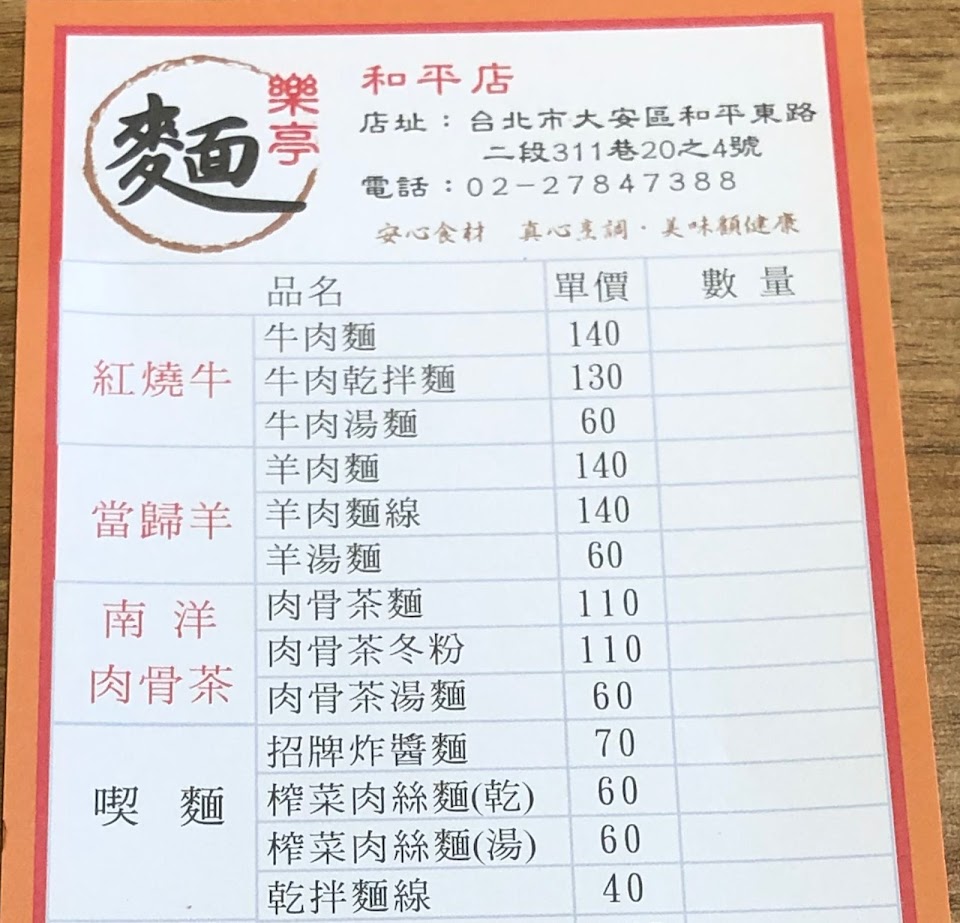 2024最新在地推薦餐廳的菜單_樂亭麵-和平店的菜單、圖片