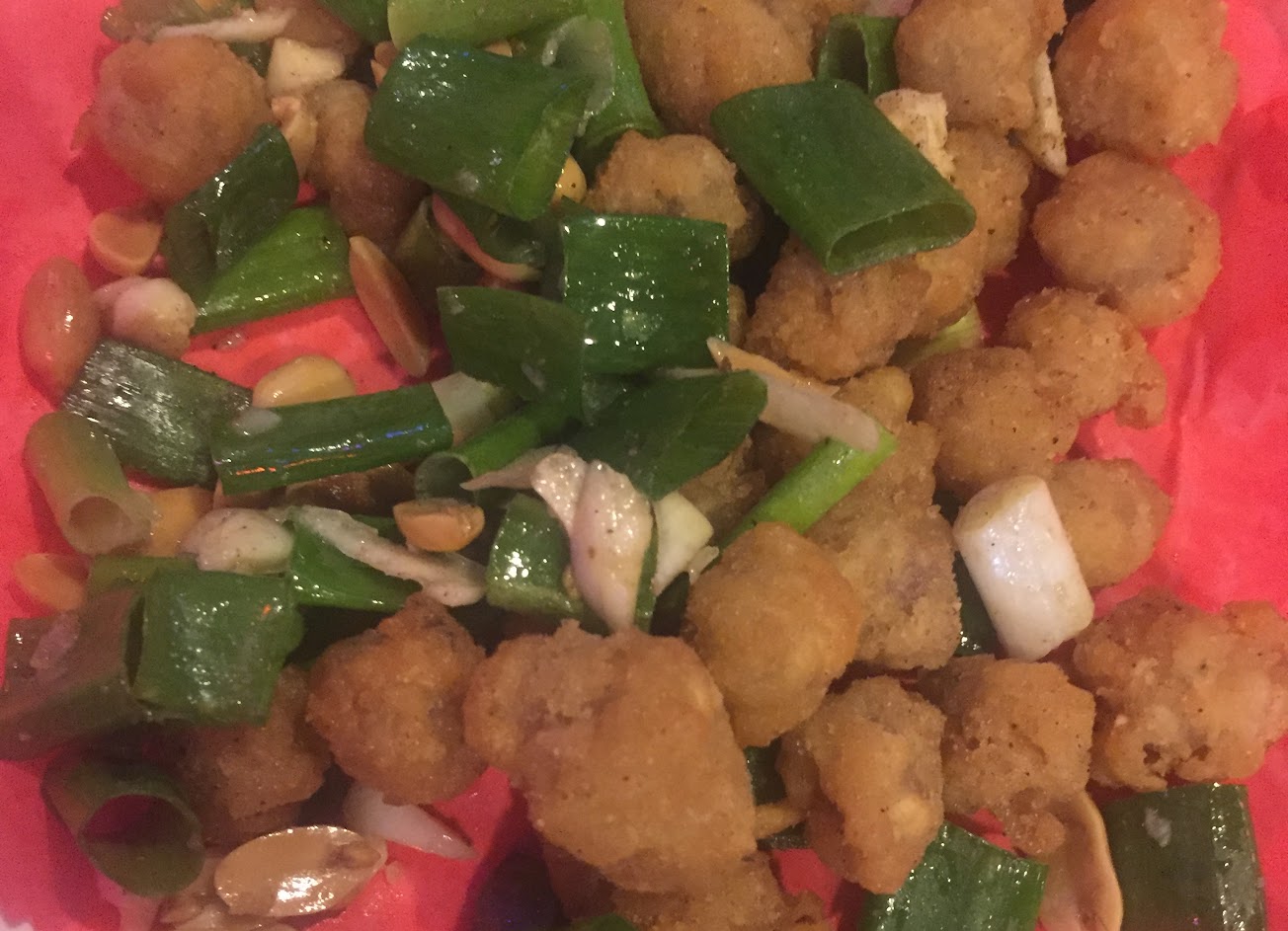 金沙豆腐~小顆的炸豆腐配金沙,滿特別,不賴。