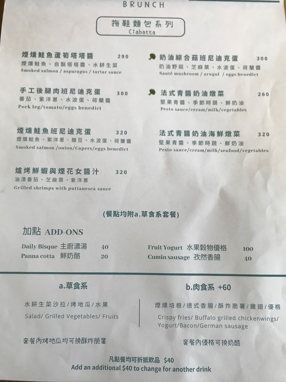 小貴,價位在230起跳 但東西精緻美味,水波蛋的醬微辣卻能讓味覺驚艷 馬鈴薯或串物也都感覺新鮮紮實 只是生菜竟然只有兩片⋯ 假日限時90分鐘。