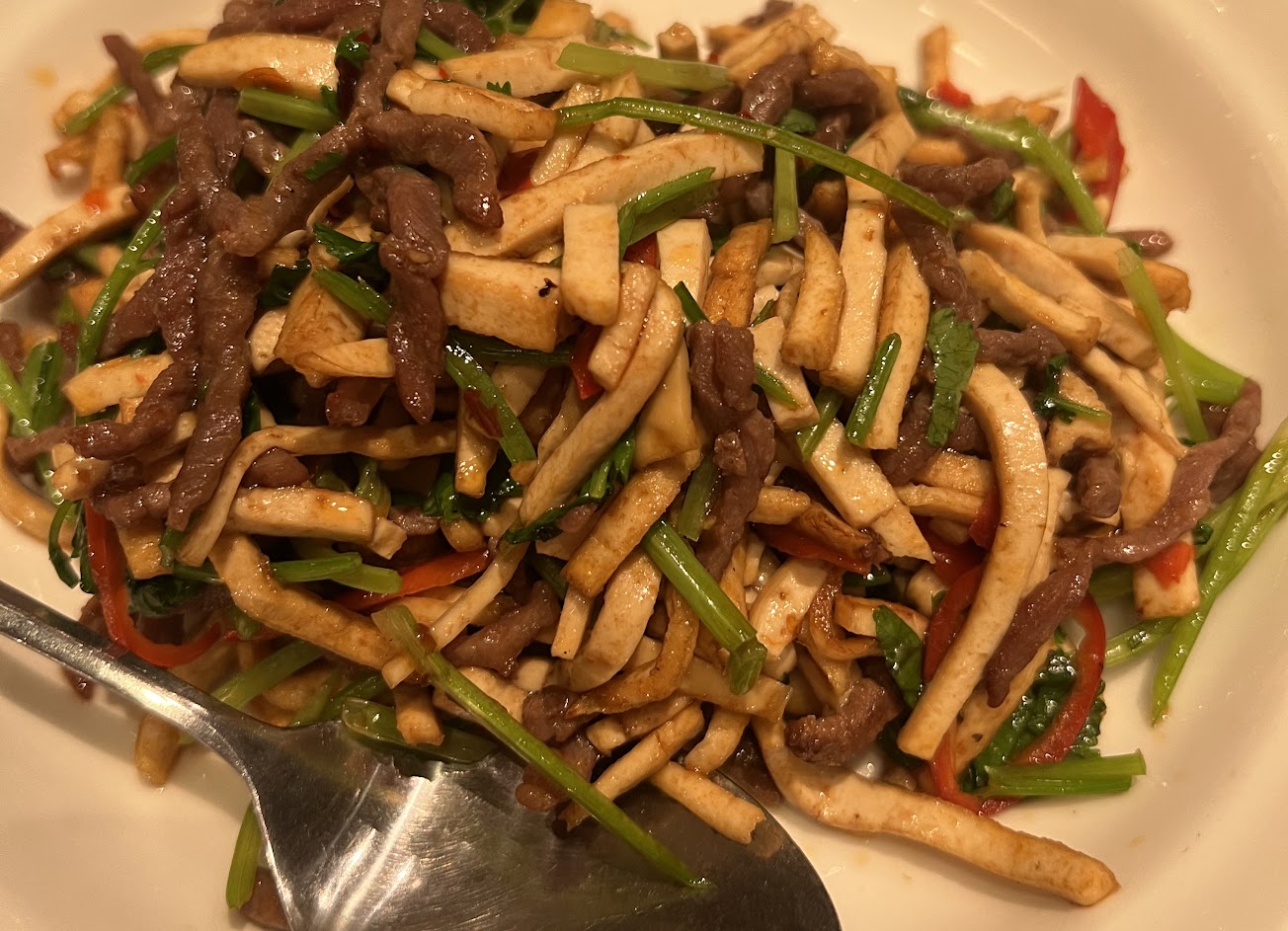 點了蔥餅夾著炒豆乾,香菜味豐富。