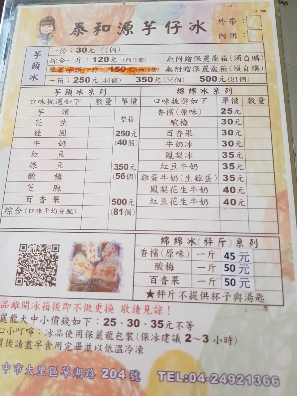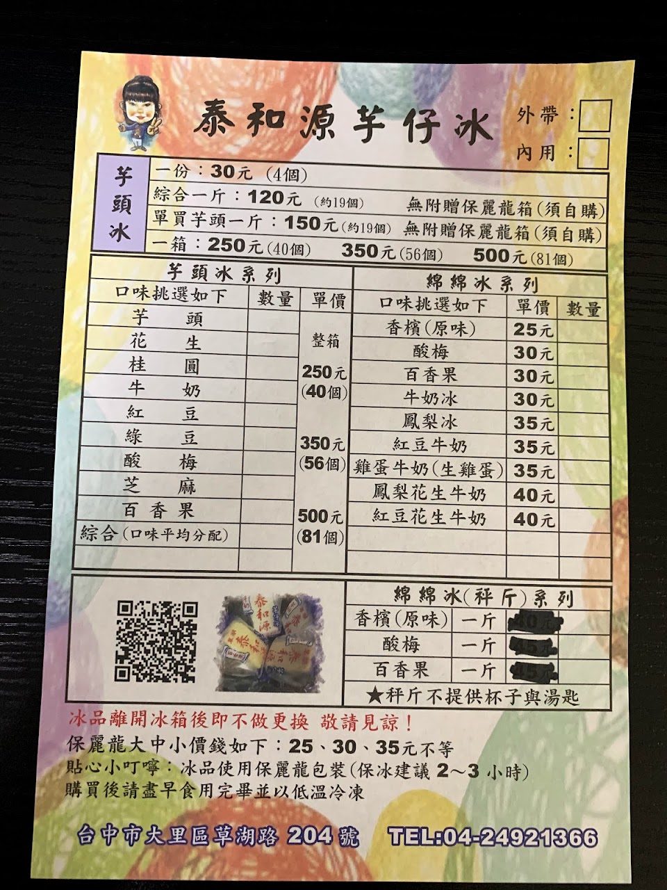 2024最新在地推薦餐廳的菜單_泰和源芋頭冰的菜單、圖片
