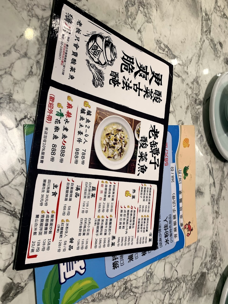 酸菜炒飯好吃、青花椒乾麵不錯,但還剩一點盤底就直接被疊著收走了,沒什麼適合幼童吃的餐點是ㄧ點小瑕疵,酸湯魚不酸不潤油不香魚片薄又少,鵝肉乾柴沒醬香也沒鵝油味了,甜燒白的豬五花大概用的是冷凍的肉,最好吃的甜點但上桌時中心還是冷硬的;覺得當做一般家常菜時還算可以時結帳發現一個人要1000元,希望店家至少食材用好一點、鵝做好吃一點。