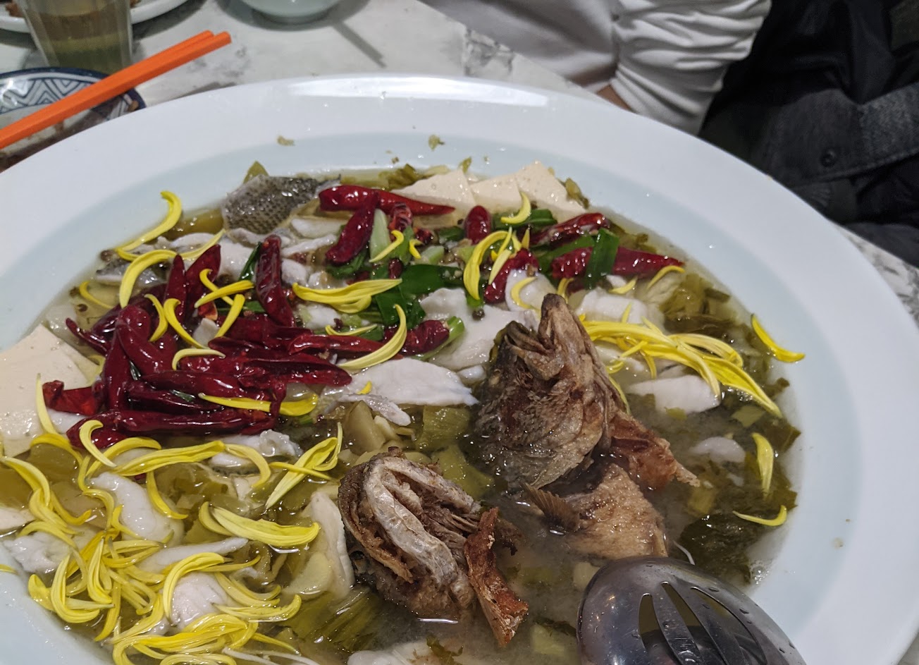 魚湯湯頭夠味!酸到恰到好處,辣椒、花椒與酸味合而為一,讓人一碗接一碗的好湯!!! 魚肉太少,但個人認為這碗湯的魚肉已經不是主角了!