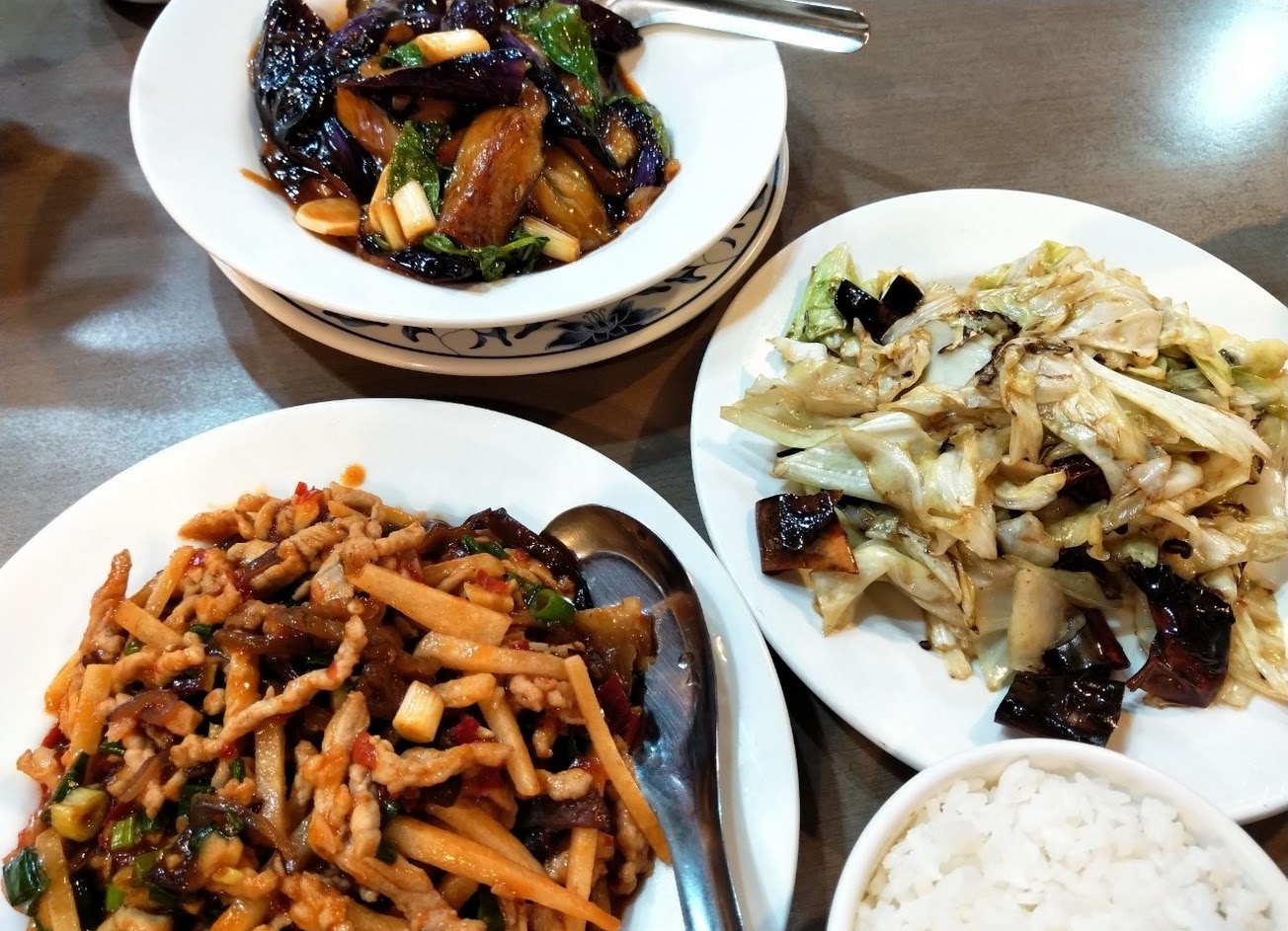 魚香茄子(茄是茄料是料)茄未吃上味道,乾扁四季豆夠乾但吃在嘴裡有點油,回鍋肉豆干有些破碎、肉片不多最寬約2公分瘦多肥少,瘦肉乾硬(應是提前備料冰在冷藏),蒜泥白肉用的是長條透光火鍋白肉片(雖然也有其他店家如此製作)但口感不太對,既是老店四川菜應該更正宗才是,也許人手不足吧~