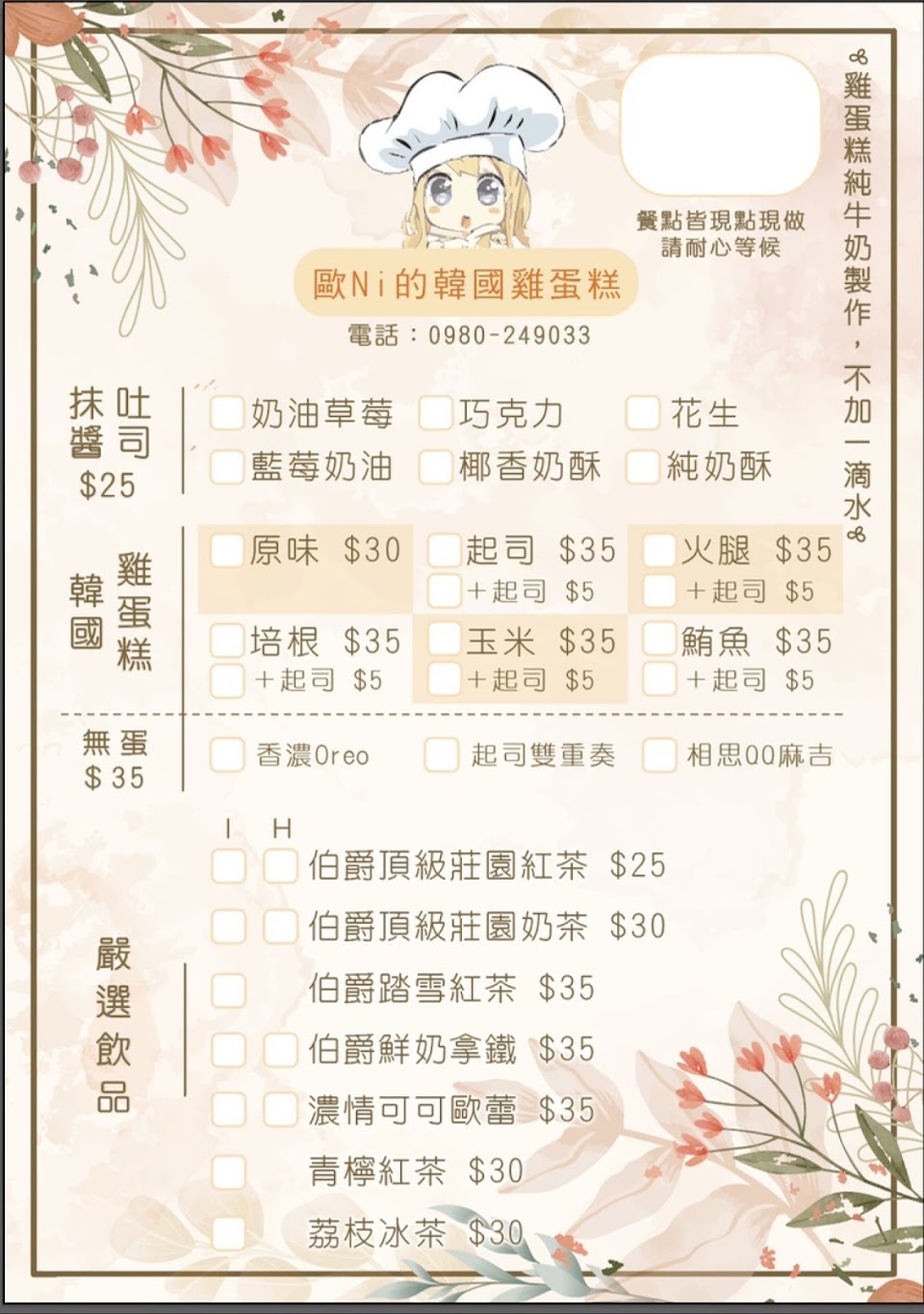 2024最新在地推薦餐廳的菜單_歐Ni 的韓國雞蛋糕的菜單、圖片