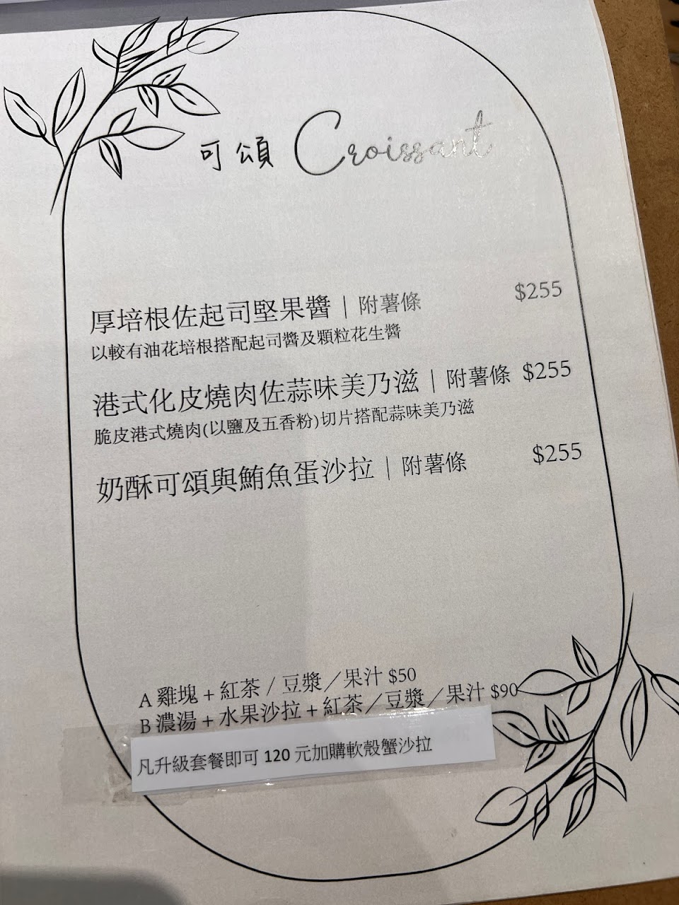 肉鬆芋泥雞腿巧巴達$285+B濃湯/水果沙拉/豆漿$90
