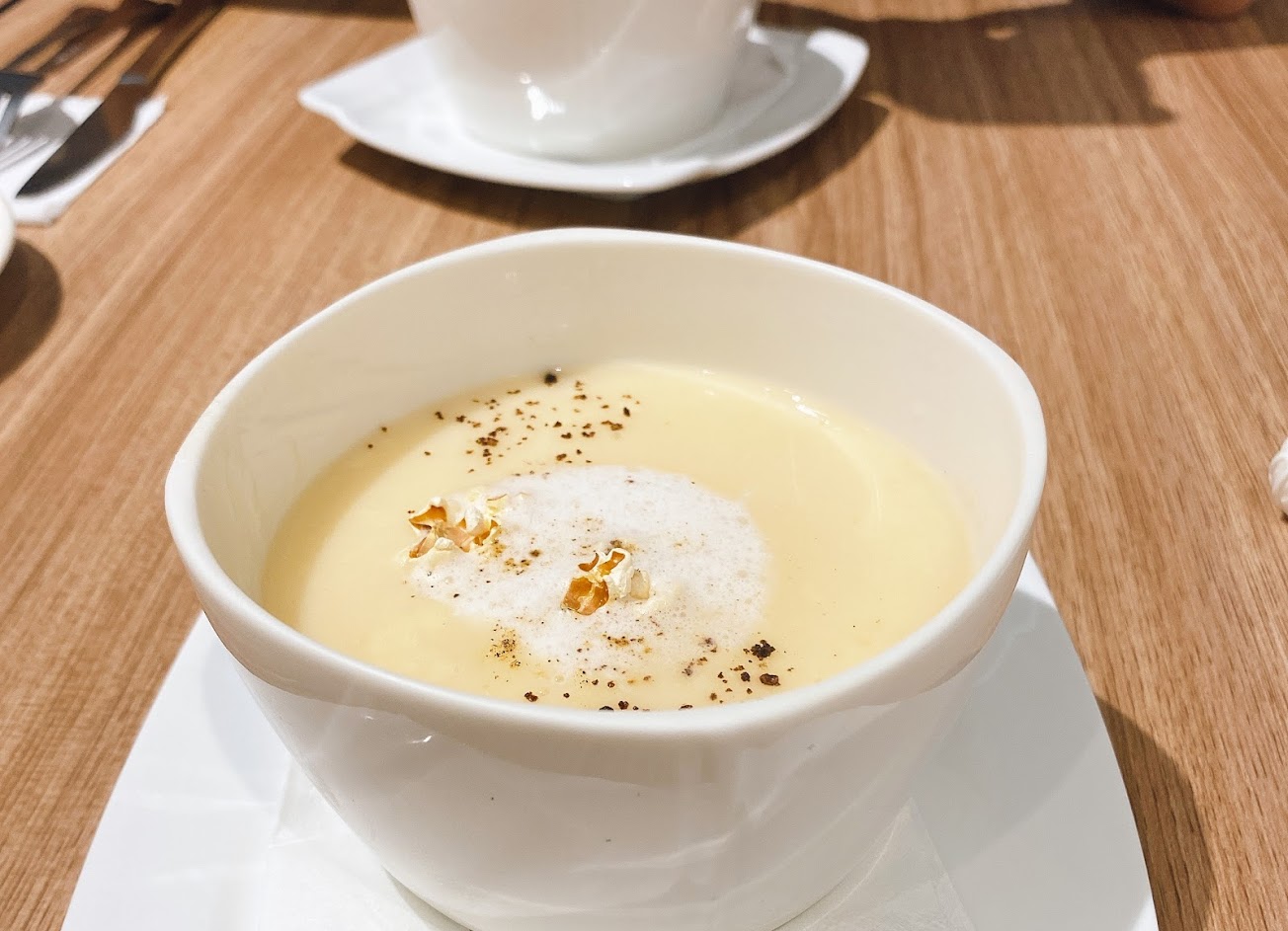 濃湯??有幾粒爆米花?️我覺得口味偏甜 湯的底部是蒸蛋 超特別的?