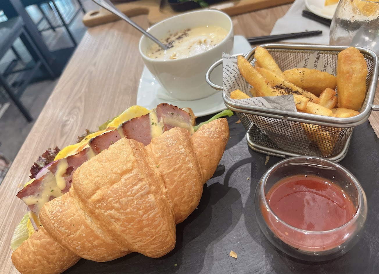 2. 介紹餐點時沒說明不提供的餐點(點蛋餅時櫃檯說已經賣完了!當下傻眼,9點營業,9:30就賣完?)這也算了,櫃檯貼心提醒麵包類需等比較久,當下詢問哪類的比較快,櫃檯說可頌的可以,當下以為可頌不需烤(實際上餐點到的時候可頌也沒烤過的痕跡)