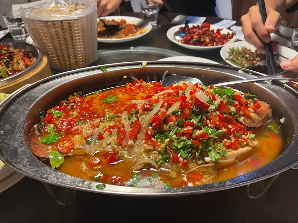 不知道為什麼評價這麼高,去吃過了以後發現是台式川菜,不麻辣、也不太香,可能點位好,老媽審核的乾扁四季豆已經煸到偏苦、梅干扣肉只有兩三塊有點瘦肉,其他的四五塊都滿滿的肥油且只有醬油味,梅乾的香氣沒有,老皮嫩肉的皮也焦黑,雖然不影響味覺,端出來時還是有點稍微嚇到,還是Kiki的老皮嫩肉漂亮,剁椒魚也沒什麼味覺特色、花椒燒蛋還可以,就是台式川菜,沒有麻香