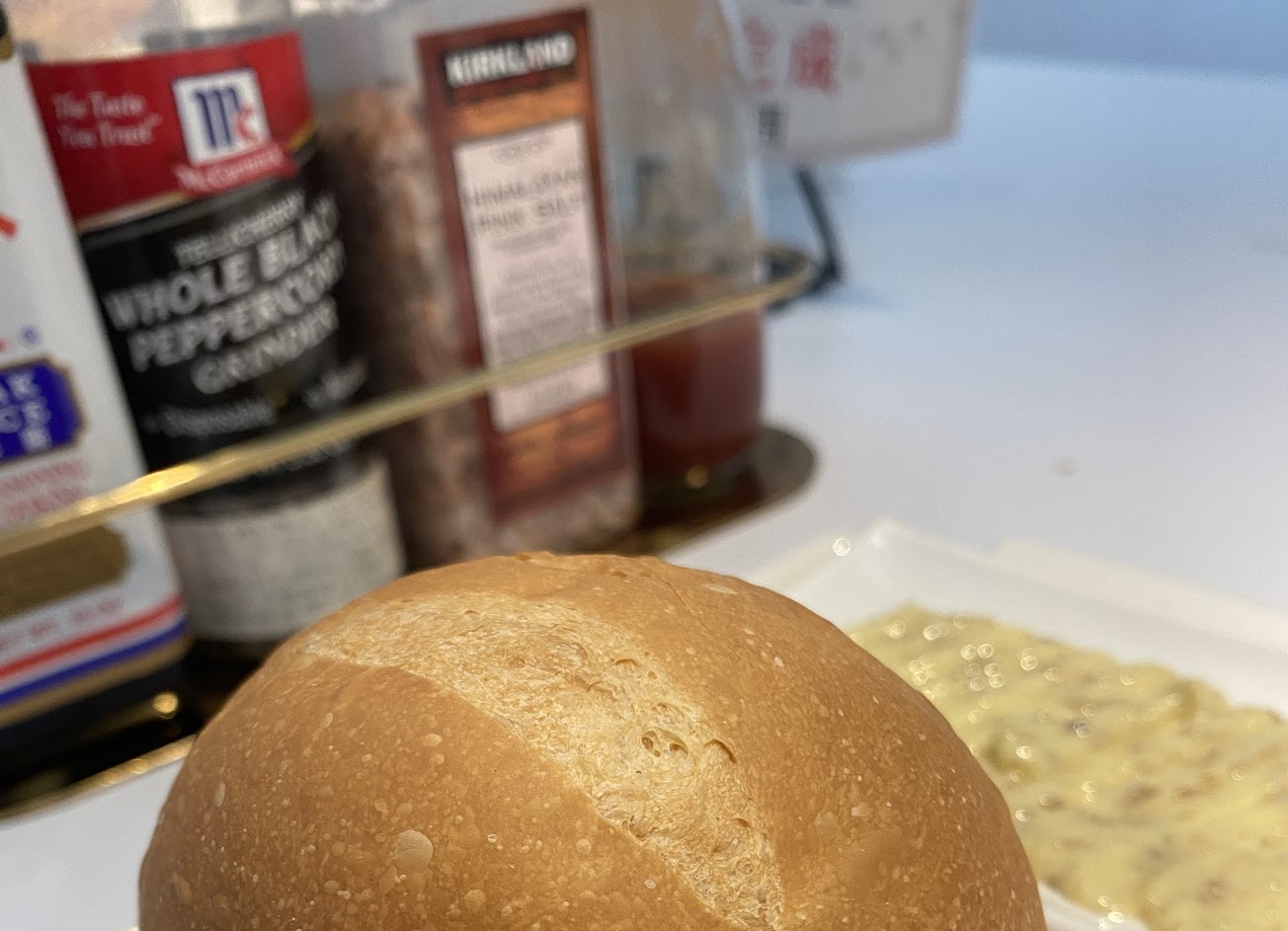 酥脆麵包搭配抹醬 外皮酥脆內裡柔軟,有加熱過所以蠻燙的 抹醬是蒜味奶油,搭配麵包蠻好吃的