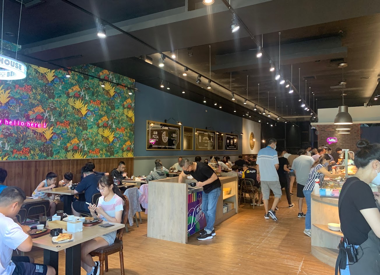 假日中午沒定位等約40分鐘 內用桌數不算多,整體裝潢活潑,氣氛輕鬆,