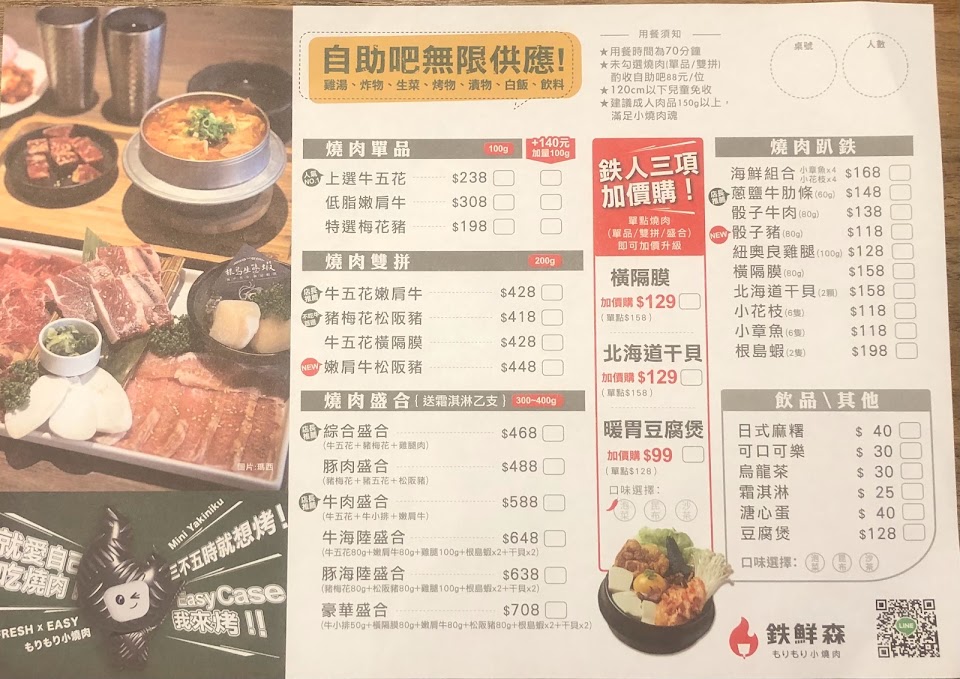 對帶孩子吃燒肉,剛剛好~~~ 服務 內用 餐點類型 晚餐 平均每人消費金額 $200-400
