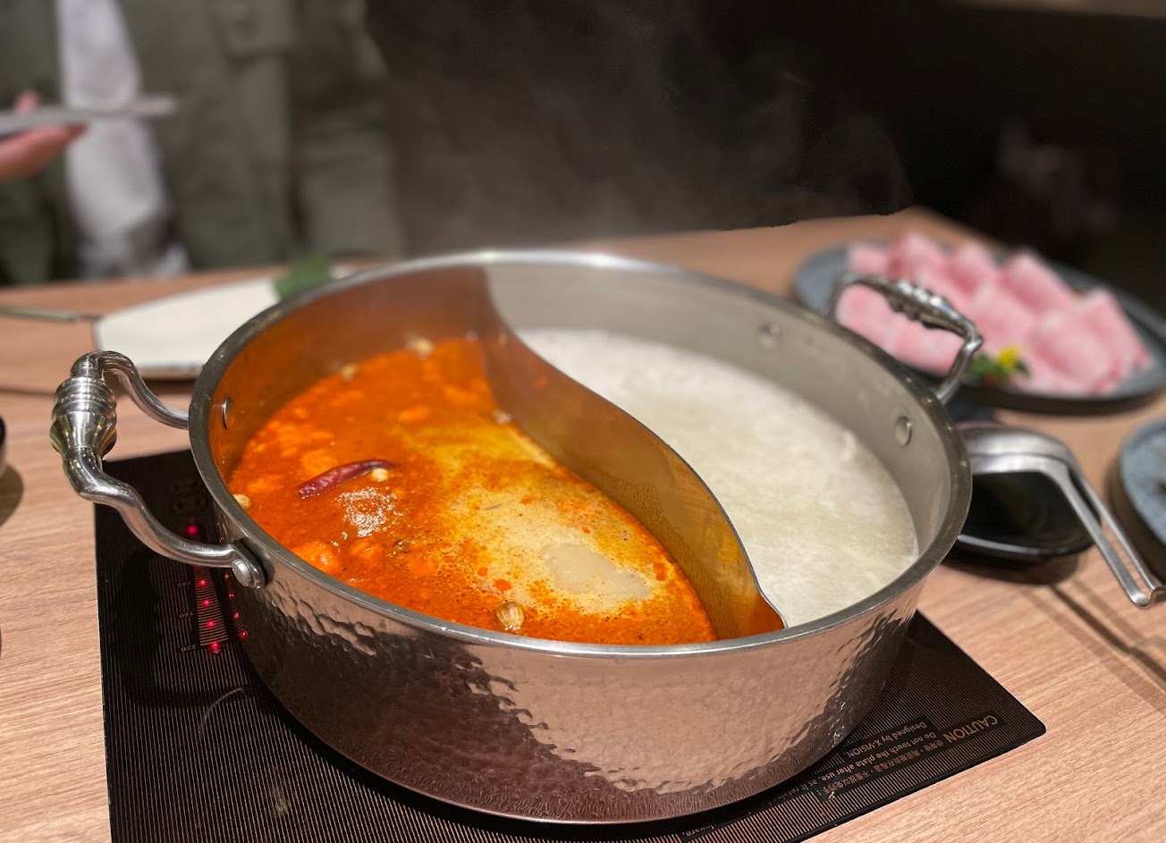 湯品選了老敖牛骨跟川香麻辣,#川香麻辣 香氣足不會很辣,食材涮完就很有味道不用沾醬,#老熬牛骨 金黃清澈的湯頭非常鮮甜,煮過蔬菜更是好喝