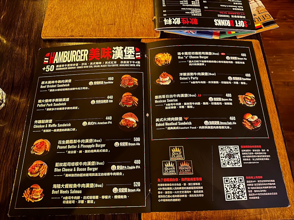 有別於一般台北看到的美式餐廳賣義大利麵、披薩,ABV美式餐酒館非常考究。除了美式漢堡還有火烤料理、鄉村菜餚、加州捲,感受得到粗獷、豪邁的西部風格。