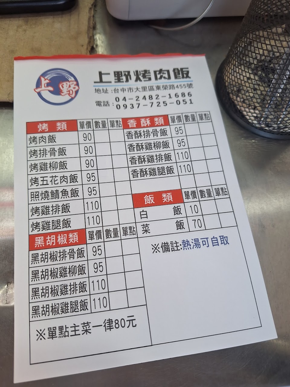 2024最新在地推薦餐廳的菜單_上野烤肉飯-大里店的菜單、圖片
