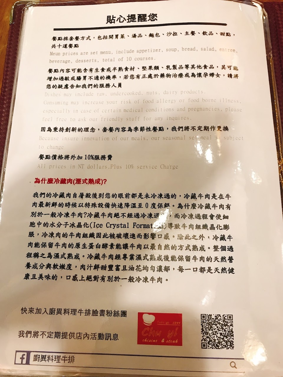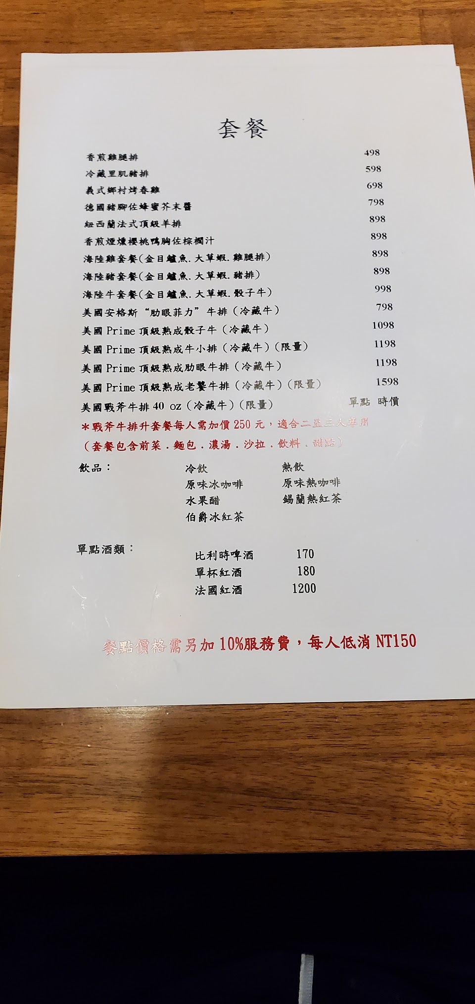 吃完餐感覺到莫名的空虛感,點了$1198的老饕牛排,結果味道跟口感跟西堤的原塊牛排很像,才7盎司,而且套餐配餐量少又沒得選擇,這個價錢我寧可選西堤或王品,起碼有比較好的服務品質選擇多CP質高。