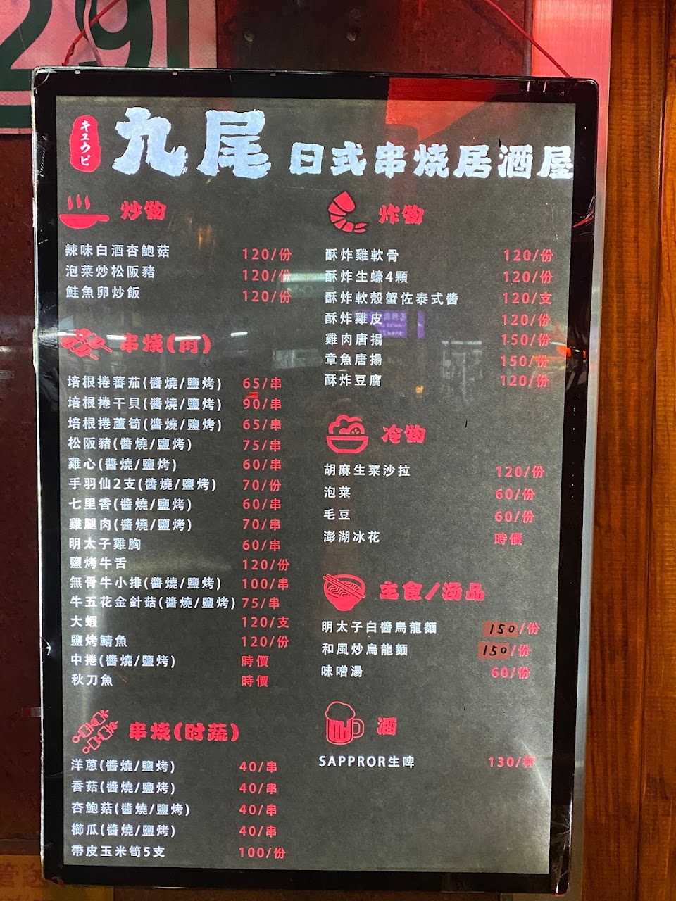 2024最新在地推薦餐廳的菜單_九尾 日式串燒居酒屋 大安店的菜單、圖片
