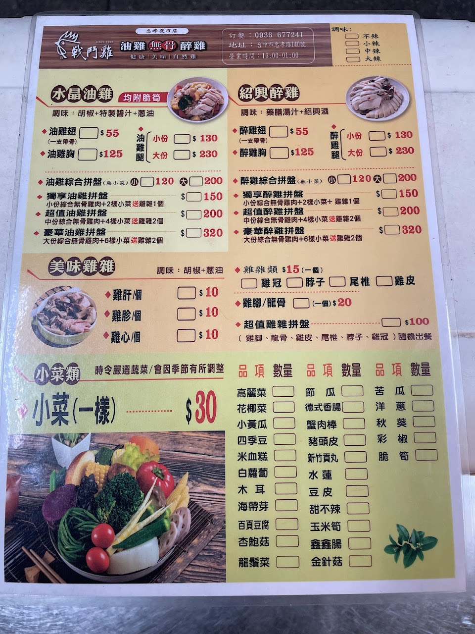 2024最新在地推薦餐廳的菜單_戰鬥雞 油雞/醉雞 鮮燙蔬菜 台中大里大明店的菜單、圖片