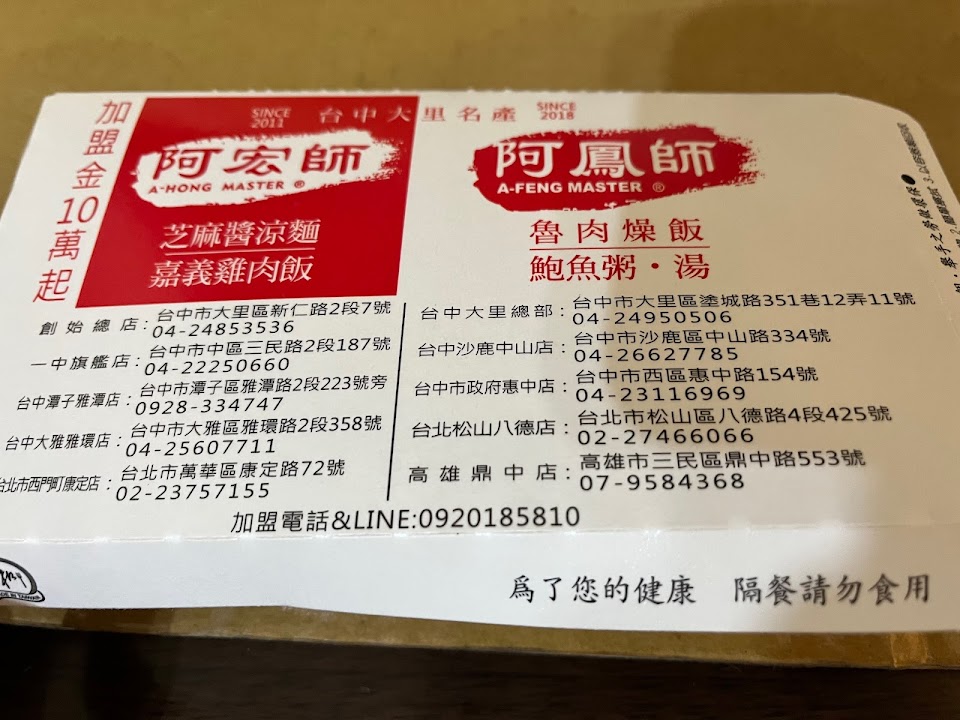 阿宏師涼麵嘉義雞肉飯(台中大里名產)