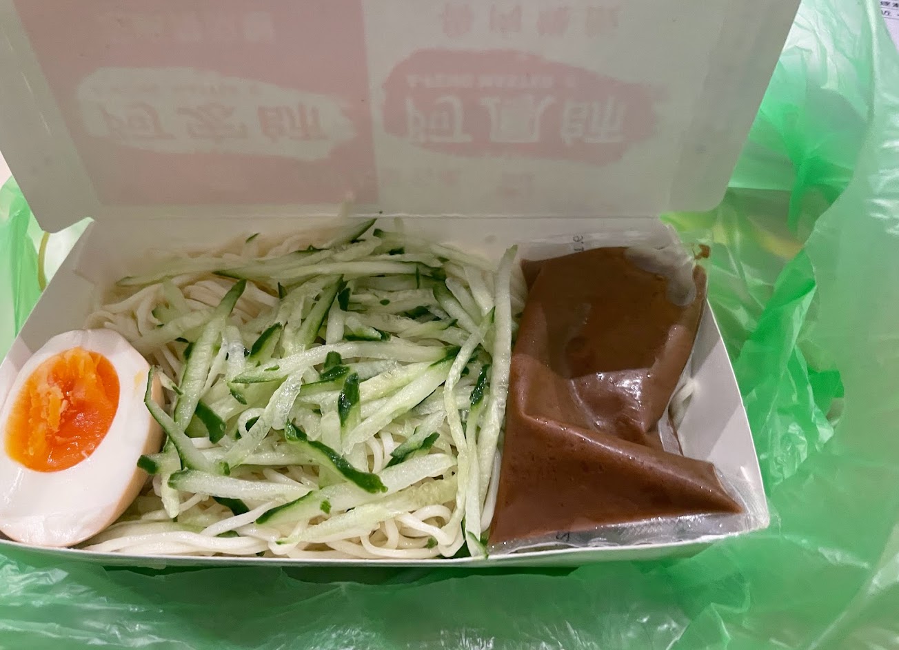 涼麵的麵沒有到很Q,感覺冰了一點時間了 感覺應該不是自己做的 份量真的是…感覺正常男生十秒可以解決的量? 份量偏少 麻醬蠻香的,但涼麵沒什麼配料只有一點點小黃瓜就要40塊,感覺沒到很值得。