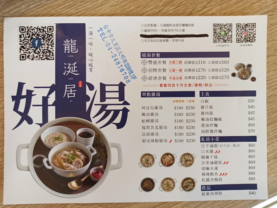 2024最新在地推薦餐廳的菜單_龍涎居好湯—大明店-大里美食~大里雞湯推薦|必喝雞湯|龍涎居|大明店|外帶美食|熱門美食|特色小吃|在地推薦美食的菜單、圖片