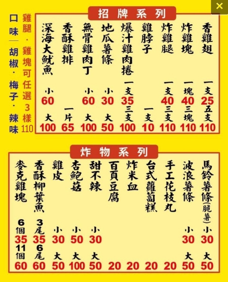 剛出爐的炸雞塊雞腿地瓜炸甜不辣最為好吃。個人喜好。