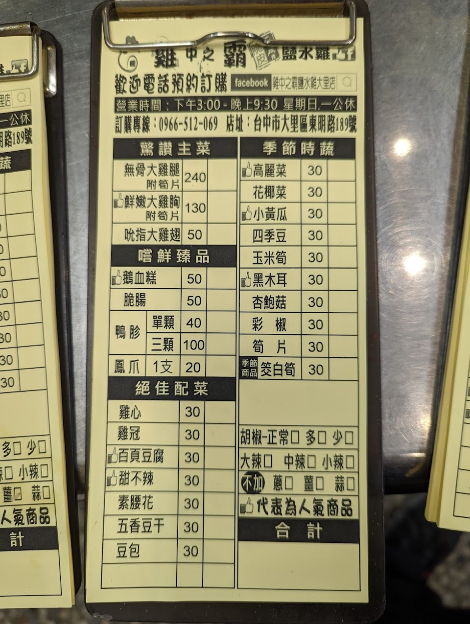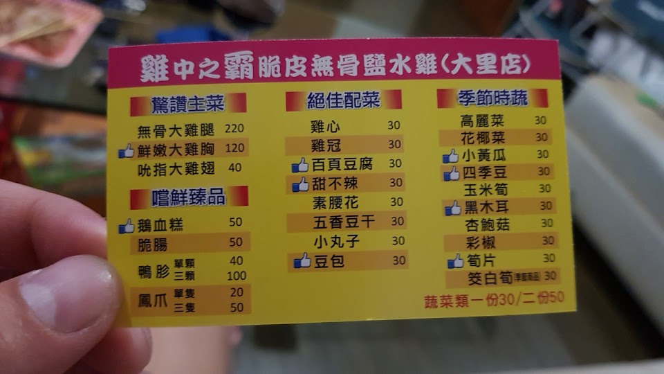 2024最新在地推薦餐廳的菜單_雞中之霸鹽水雞大里店的菜單、圖片