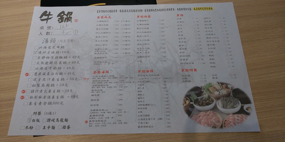 鍋內食材肉品品質及用餐空間相當滿意價格稍貴點