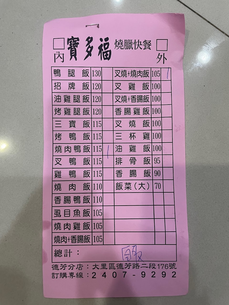 我還以為跑到台北市中心吃便當 大里大里欸只是稍微好吃一咪咪貴成這樣 其他寶多福連鎖店也沒貴的那麼誇張!