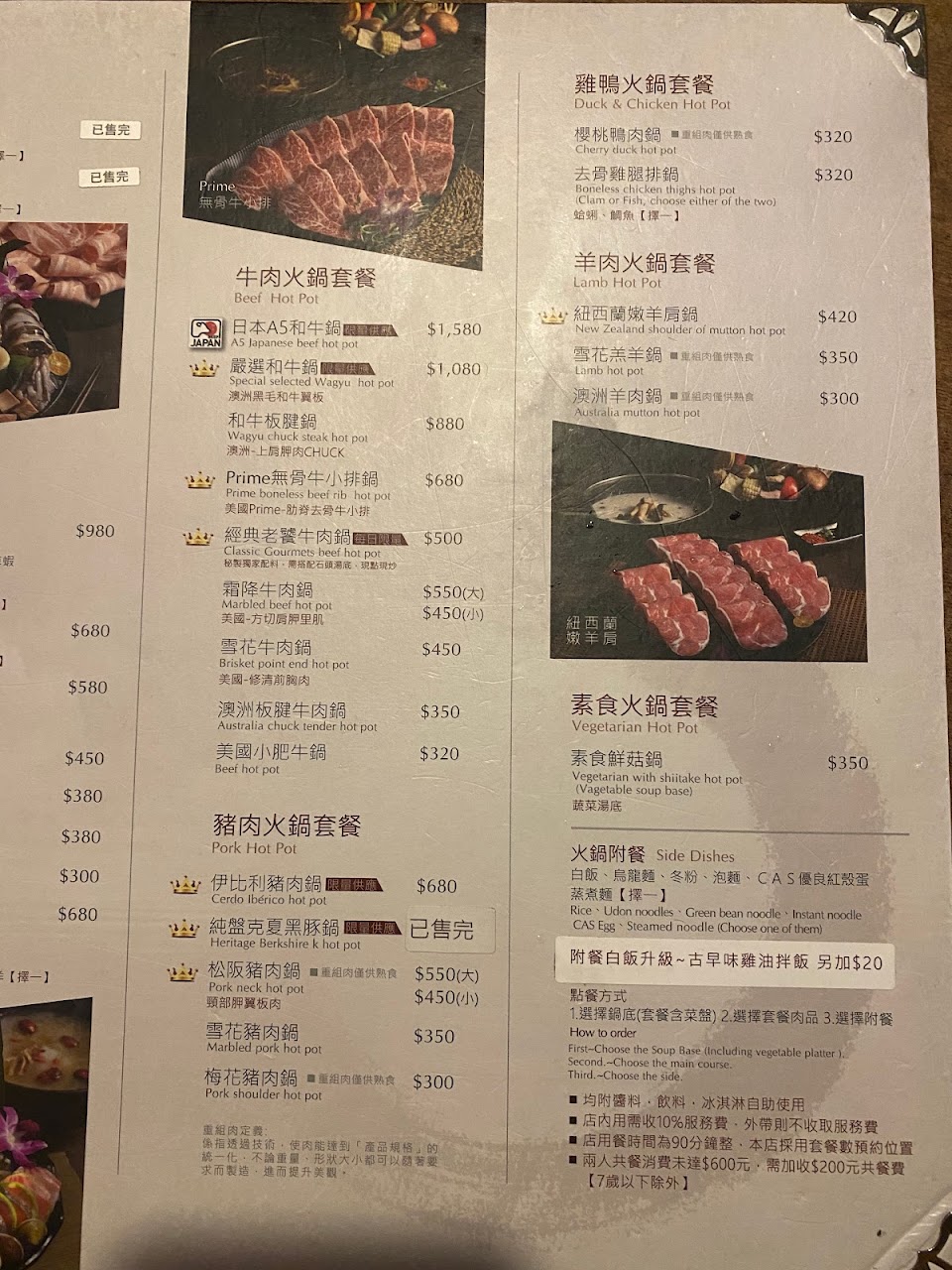 另外兩人需點600以上不然需收200共鍋費,個人覺得門檻太高,若只有一位想吃時就被逼著非點高單價鍋類不可…