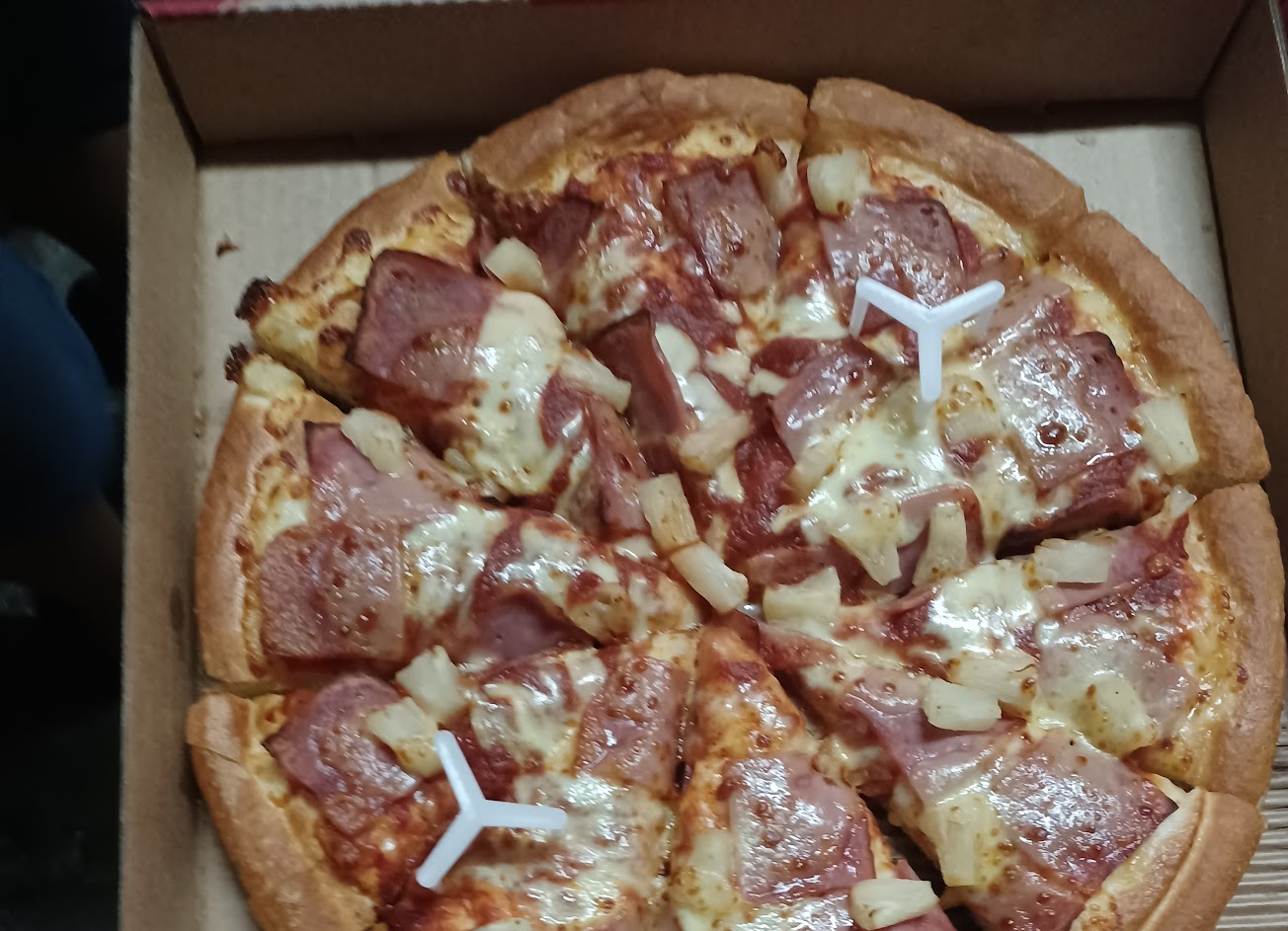 昨天買了夏威夷芝心大披薩兩個,不知道做披薩的是何方高人,披薩表層非常焦,整個吃起來很乾,而且鳳梨擺放不均,一個披薩裡面有四塊大概有十個鳳梨,其他都只有兩三個鳳梨,然後起司量跟芝心的量比正常量少了一半以上,不知道是我太久沒買過早已更新改版,還是你們店本來就這個模式。