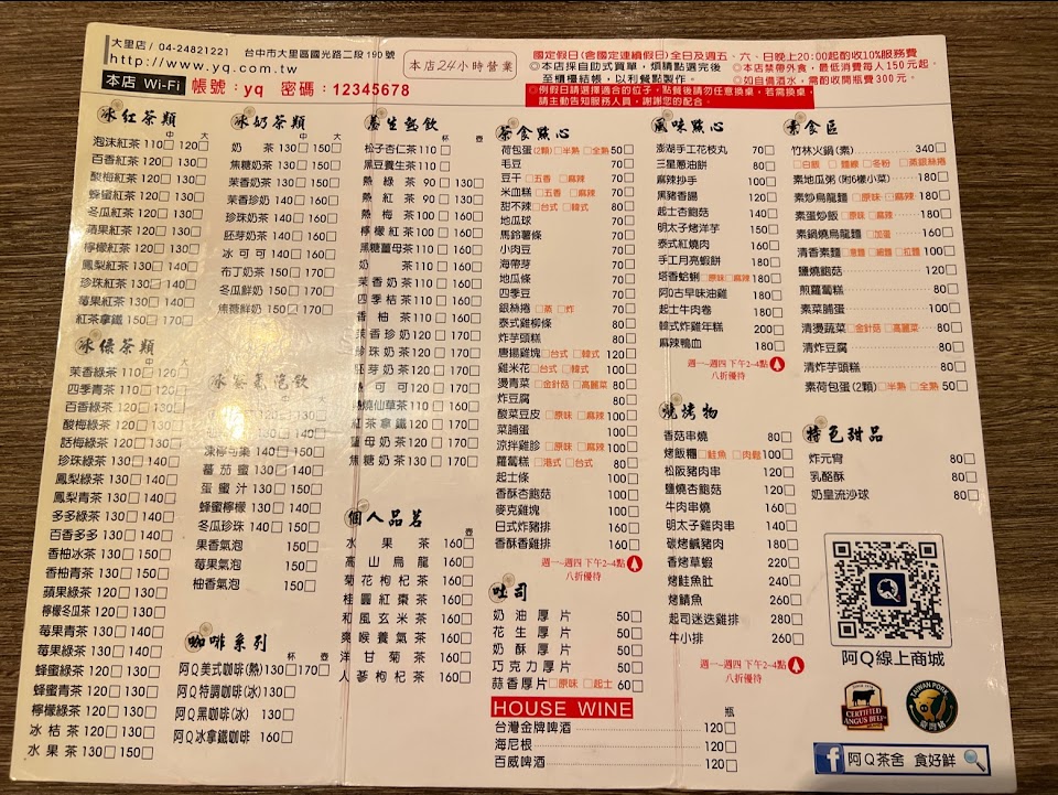 2024最新在地推薦餐廳的菜單_阿Q茶舍大里店的菜單、圖片