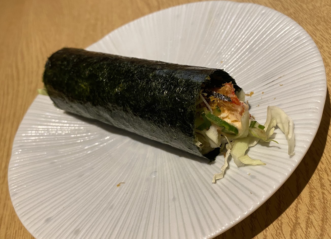 1. 鮮蝦手卷,好吃且新鮮,炸蝦麵衣不會很厚