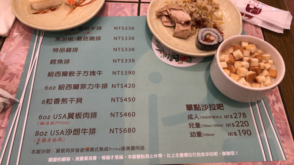 現在改變了這樣,環境是可接受,但是吃的東西確跟以前不能比,現在東西沒有以前多樣,而且湯也沒有好喝,牛排也比一般牛排店的小,吃完這次應該是會考慮一下,下次會不會在去,答案(不會在去吃)