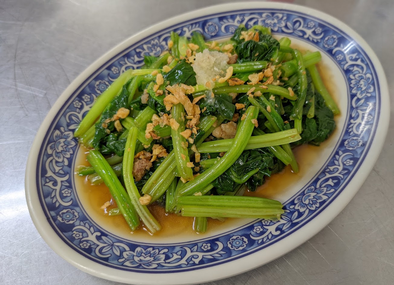 🌟燙菠菜 – 新鮮爽脆,調味正好,上灑了蒜泥跟蒜酥👍
