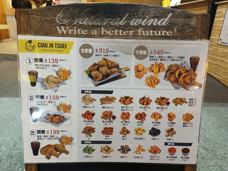之前都點台式雞排~皮薄汁多不油膩真的好吃??? 今天家裡有客人買了全家餐 大家都稱讚比某爹好吃? 而且一樣皮薄汁多而且是薄脆不膩 老闆娘人也很客氣 推薦給大家太平的好吃炸雞店呦??