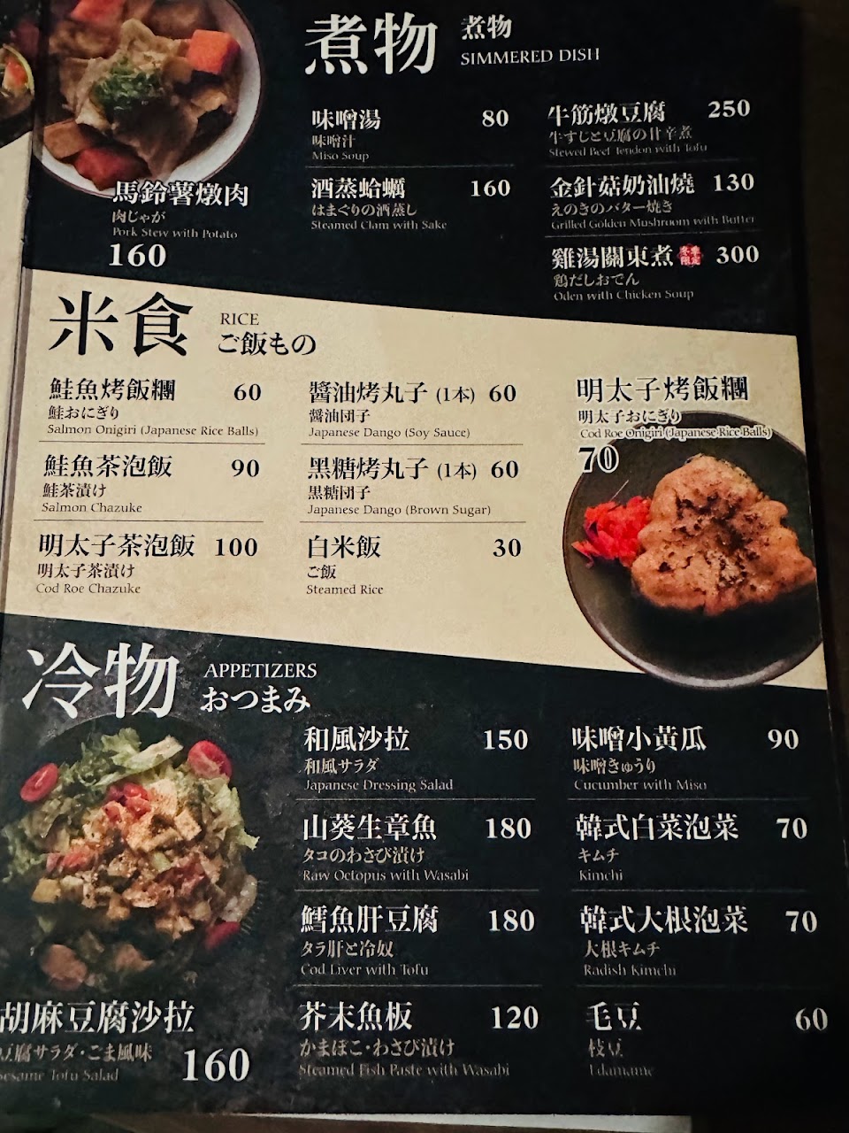 食物:近期吃到最好吃的馬鈴薯燉肉。其他串燒中規中矩。節瓜和明太子山藥失望。節瓜感覺沒熟。明太子山藥很薄很小。酒的部分還不錯。算多種選擇